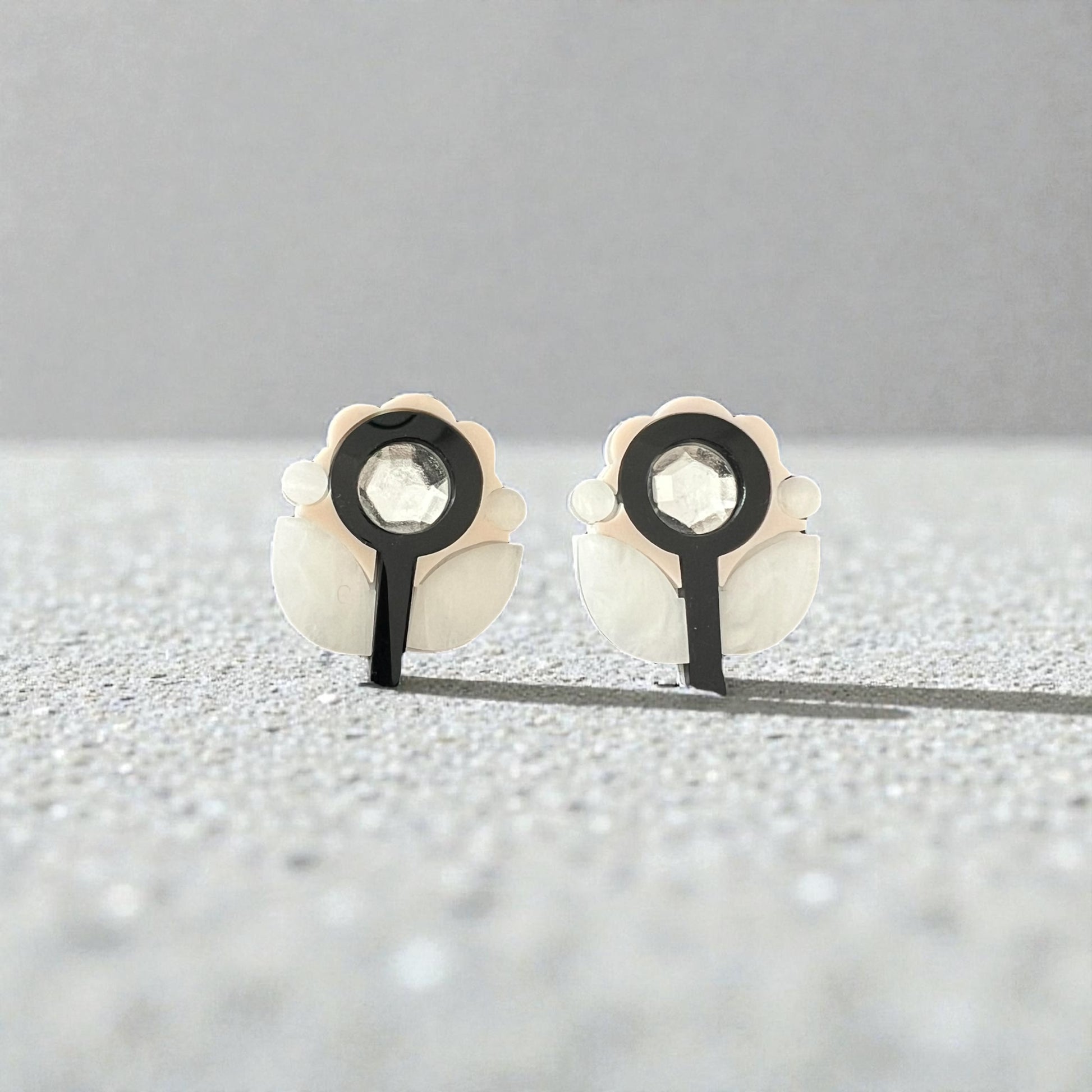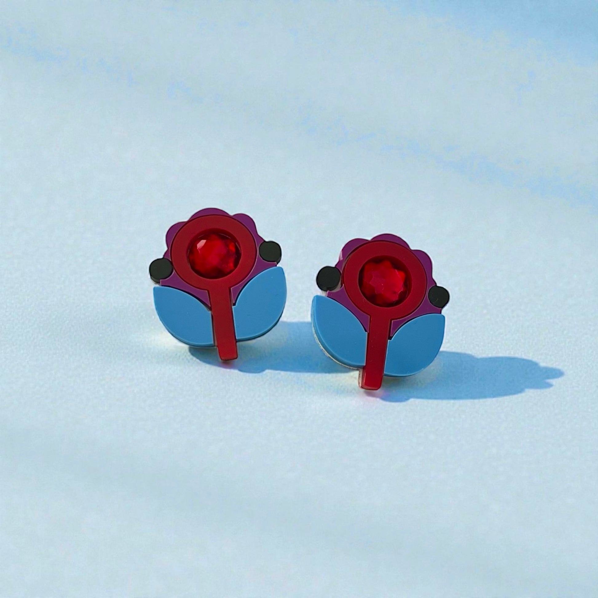 Meet the Alora Studs, a playful yet polished take on everyday statement earrings. Inspired by blooming florals and bold colour stories, these studs feature layered petal shapes with a faceted crystal centre that catches the light beautifully.