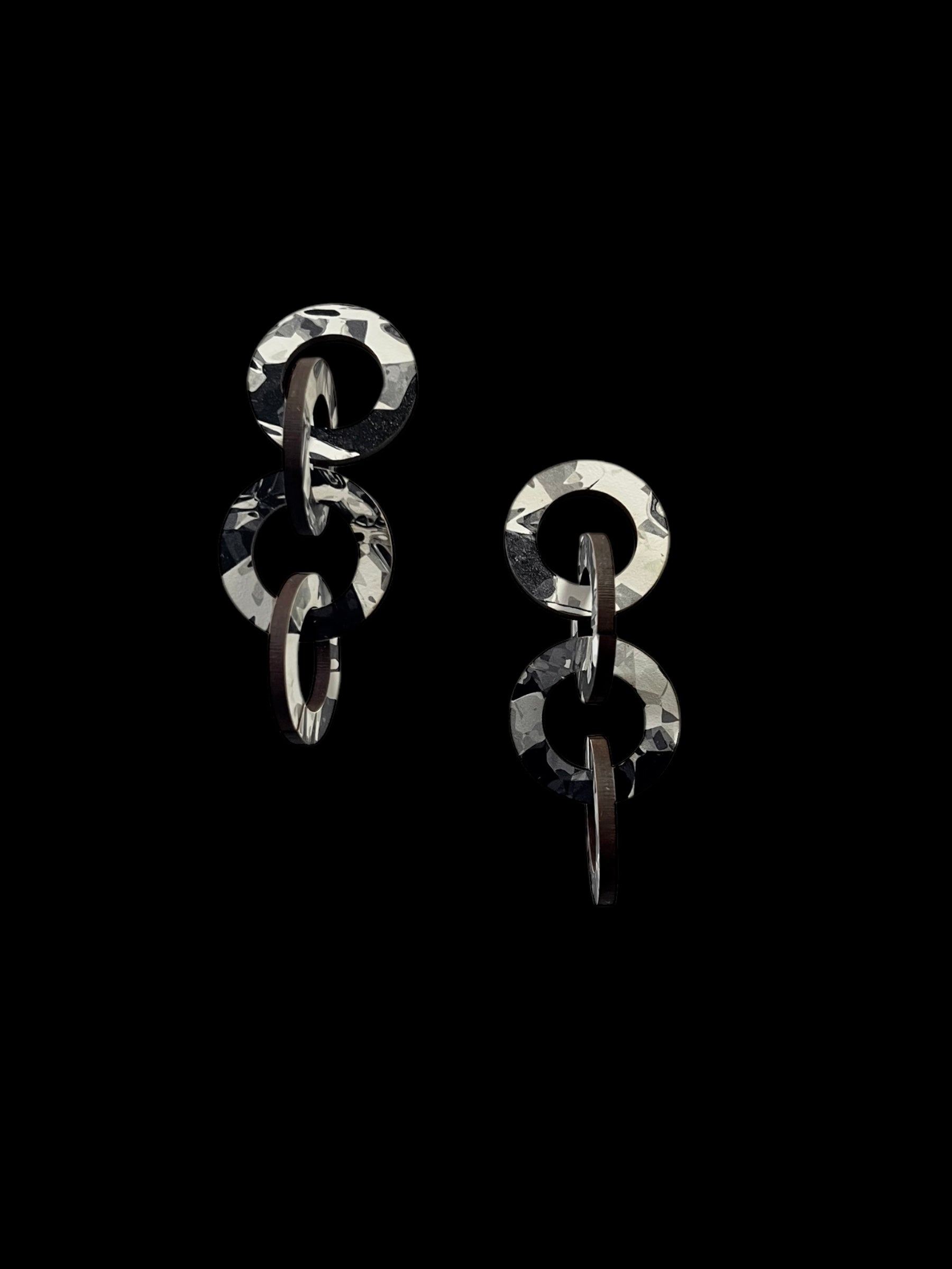 Sterling silver and Brass will naturally tarnish over time due to exposure to air, water and oils. Keep metal dry. Wipe with a polishing cloth to remove tarnish and restore shine.
