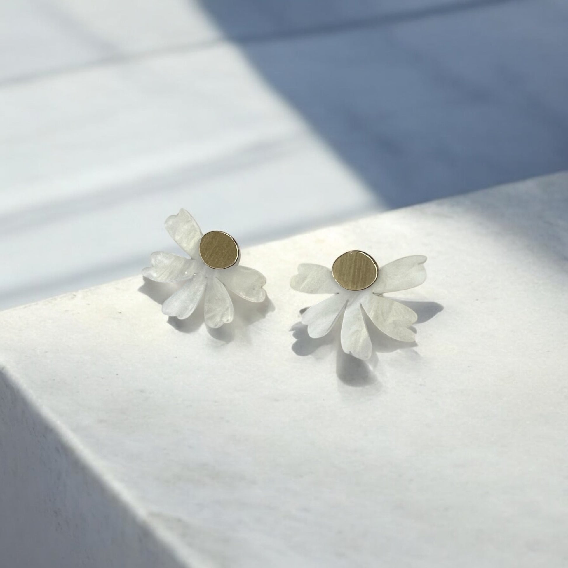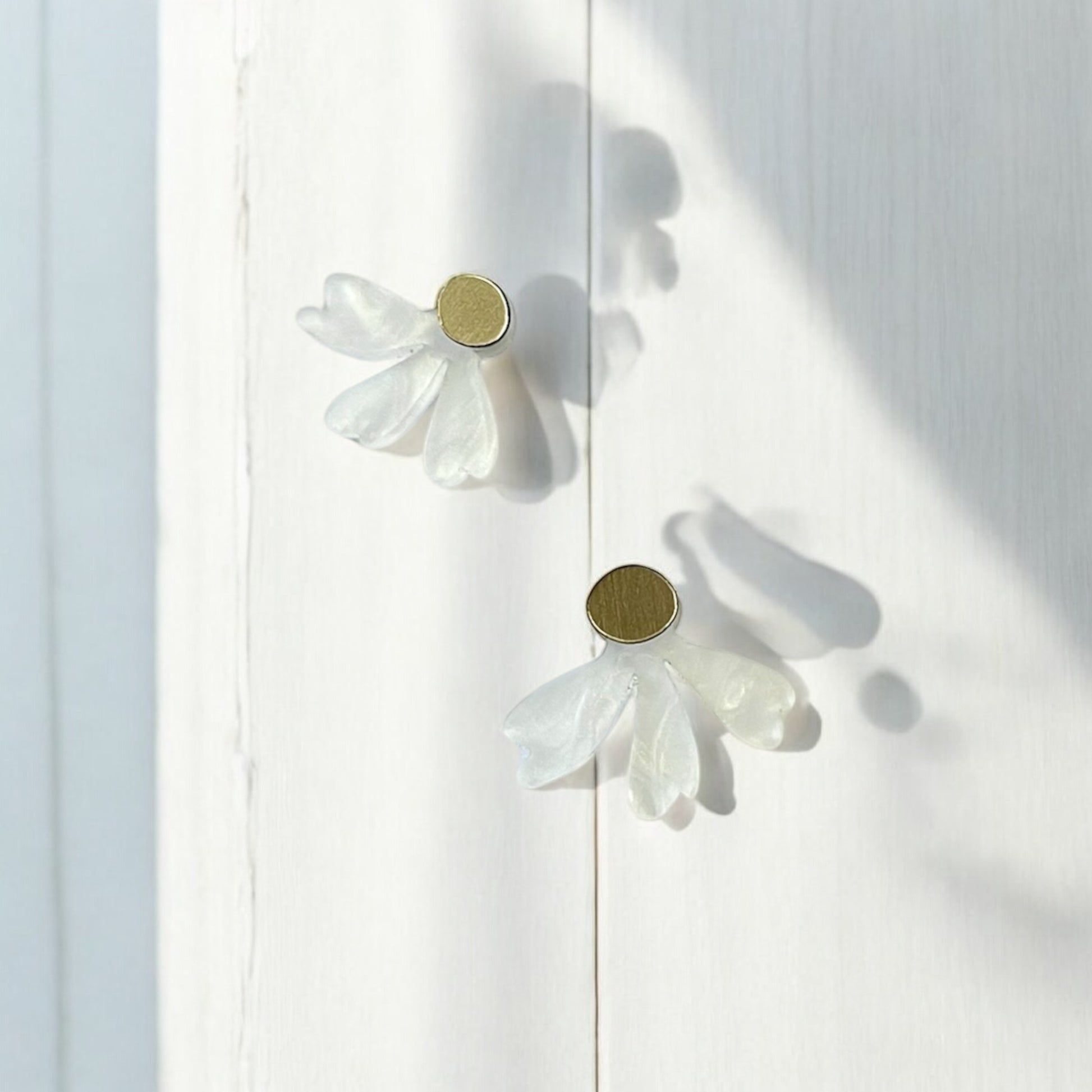 The Daisy Studs are the epitome of simple elegance, combining a whimsical charm with timeless springtime appeal. These cute, classic daisies feature a minimalistic design with 3 or 4 delicate petals, making them both playful and sophisticated. Available in two sizes, they offer versatility for any look—whether you prefer a subtle touch or a slightly bolder statement. Perfect for adding a hint of charm and elegance to your everyday or seasonal outfits.