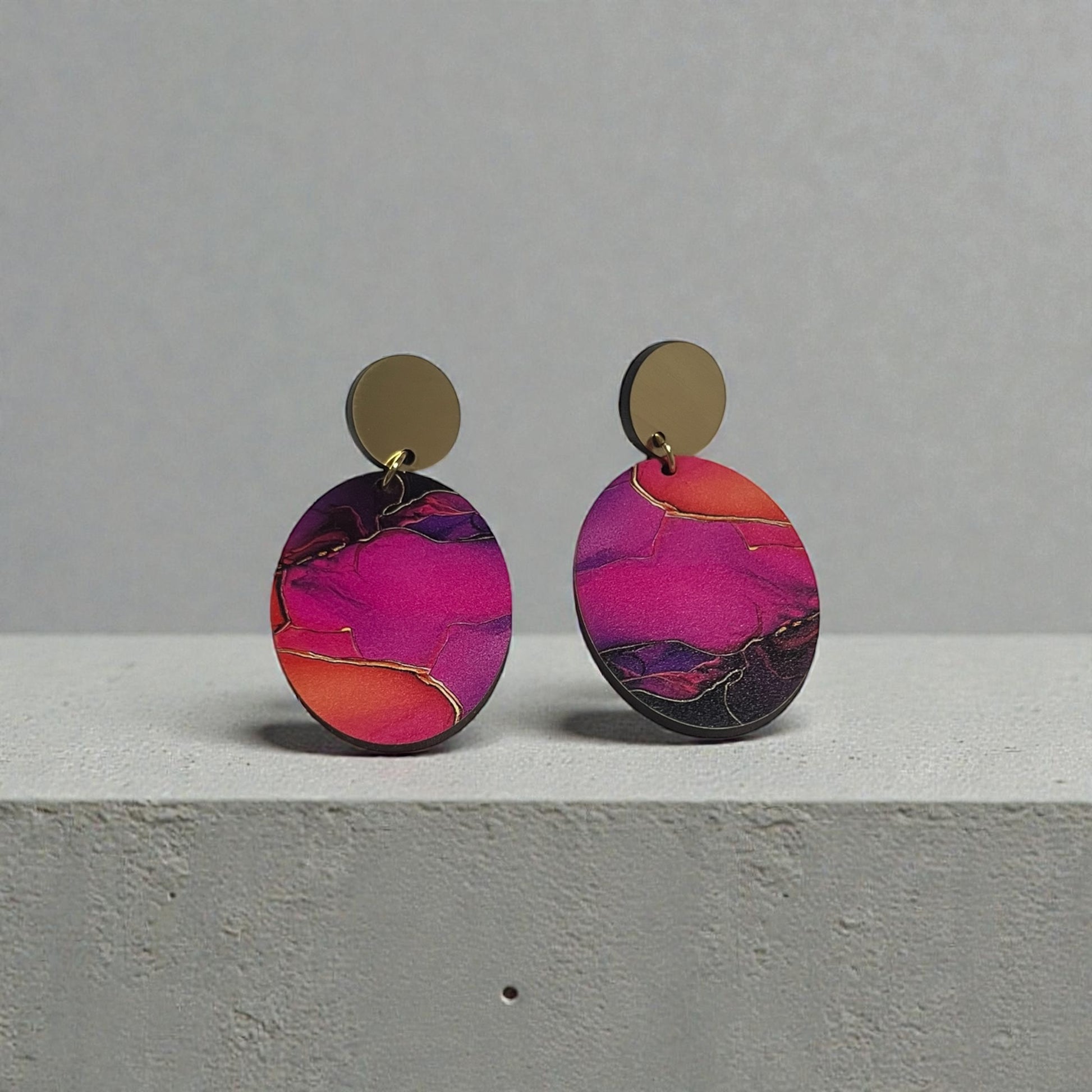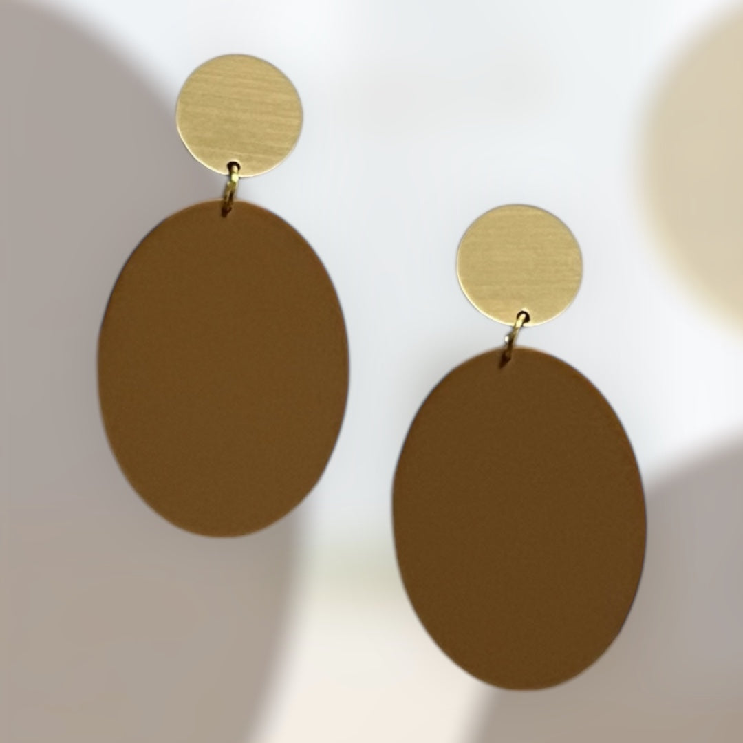 The Eclipse Earrings are a perfect harmony of simplicity and bold design. Originally introduced as chic gold and silver acrylic studs backed on leather, these earrings have now evolved into vibrant, spring-ready dangles in striking, bright colors. Featuring a dynamic interplay of circle and oval shapes, the Eclipse Earrings offer a modern, minimalist aesthetic that effortlessly elevates any outfit. Lightweight and versatile, they are the ideal accessory for adding a touch of bold elegance to your look, whether classic or colourful.