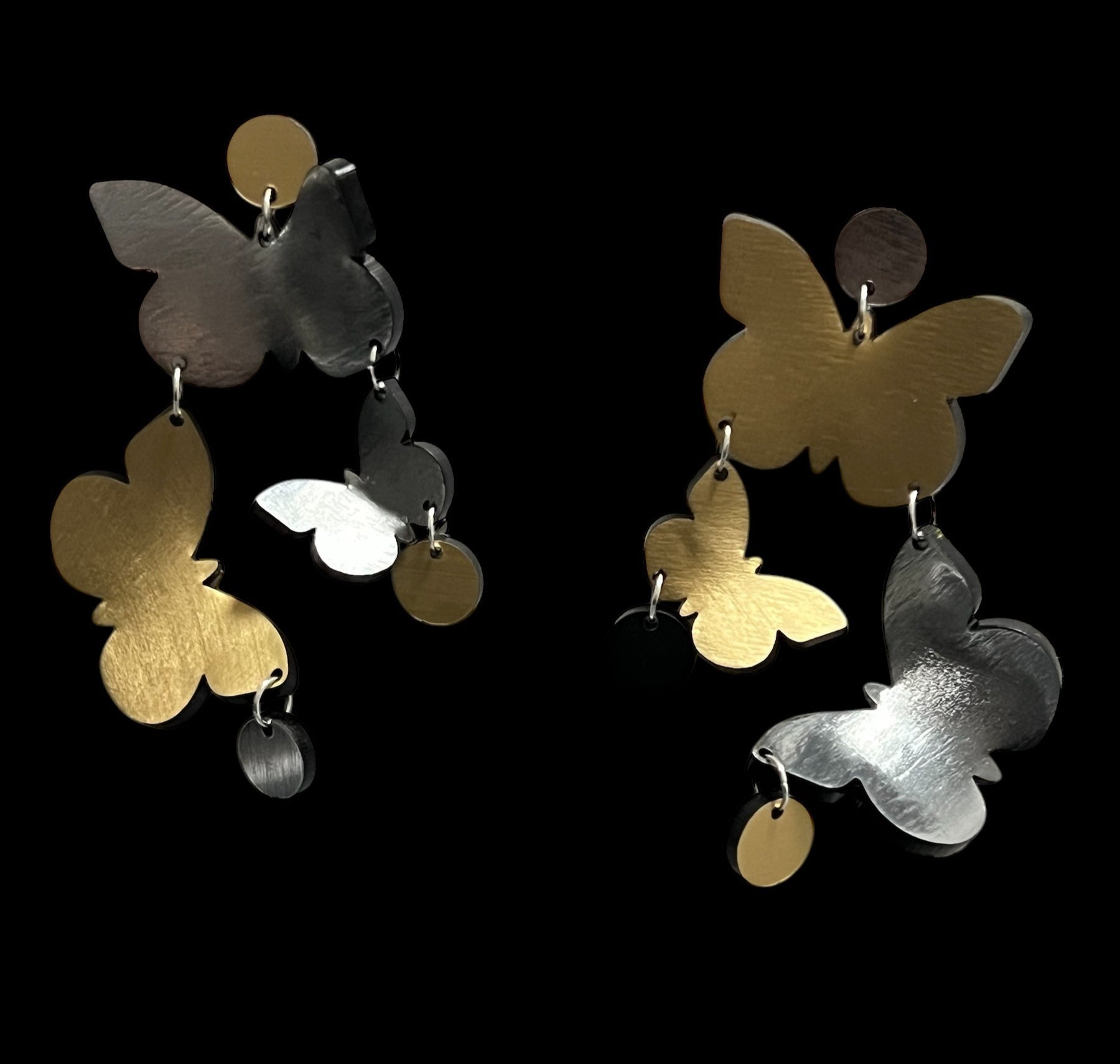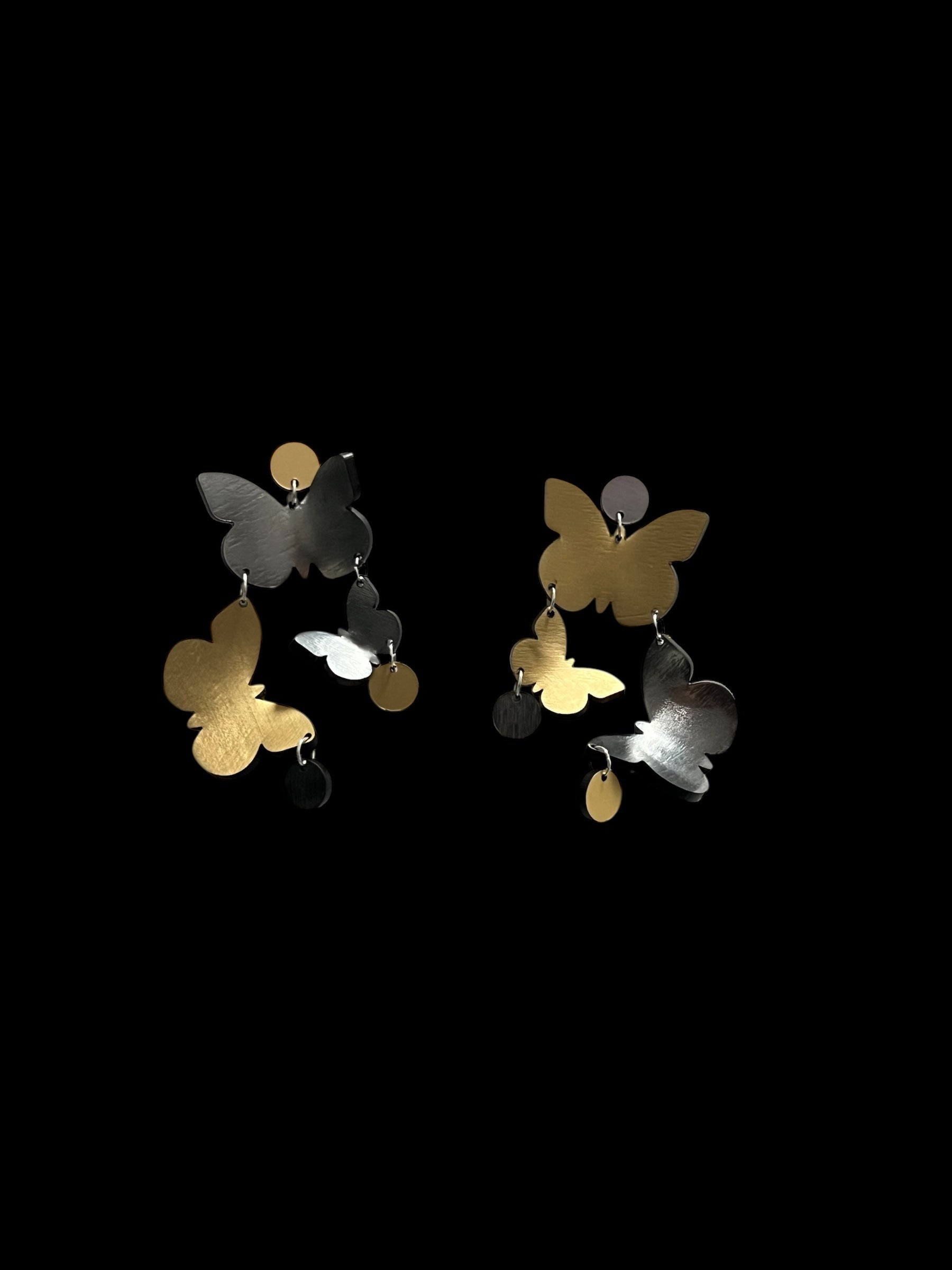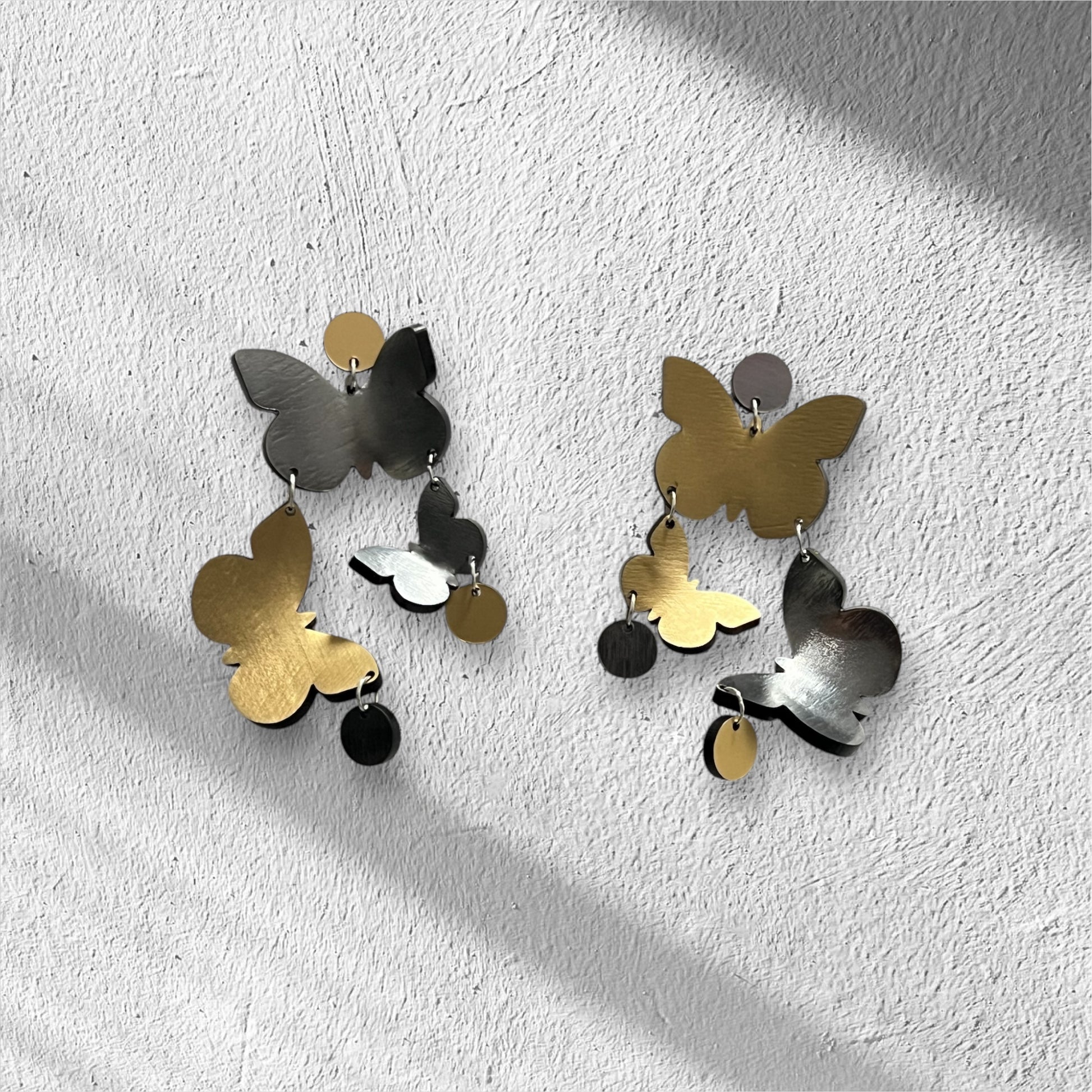 The Flutter Earrings are a stunning embodiment of grace and movement, featuring another exquisite take on butterflies in motion. Hand-formed from luminous metallic acrylic, these earrings showcase a captivating 3D effect that brings their design to life. Feminine and bold, they offer an elegant yet striking accessory for any occasion.