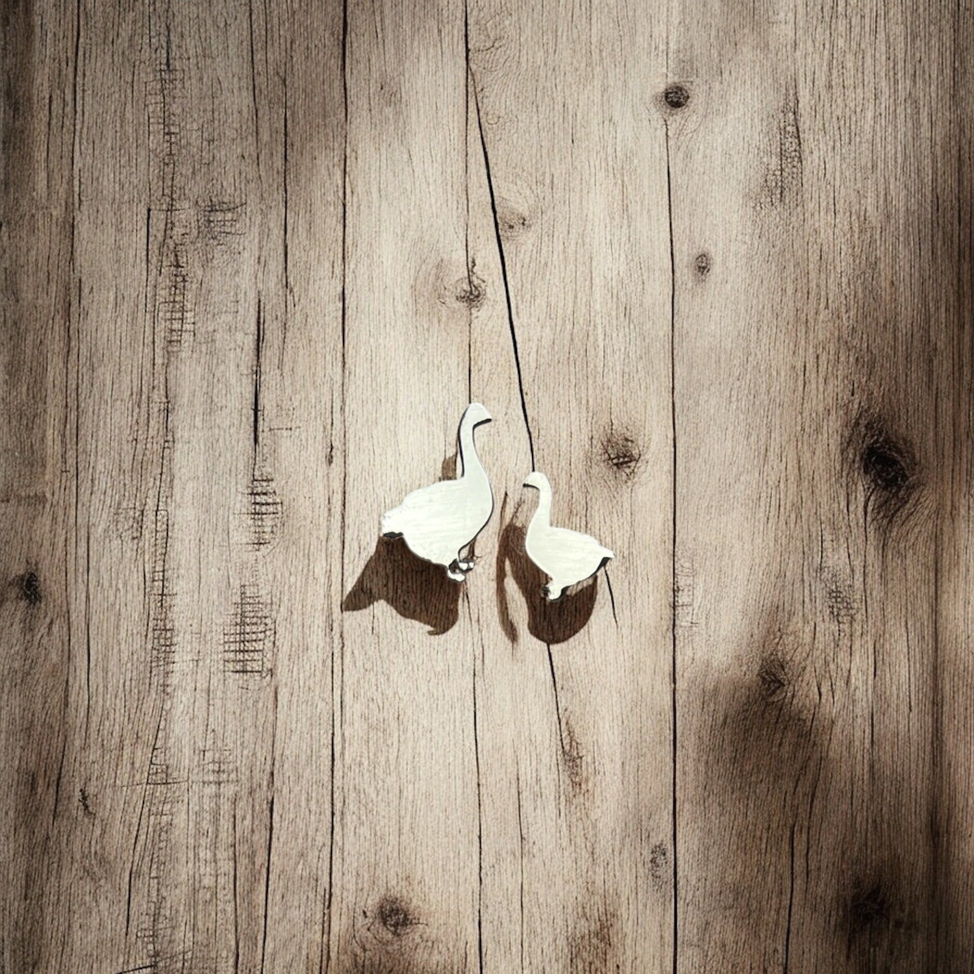Inspired by Canada’s beloved and iconic waterfowl, the Gooselings are a sweet, asymmetrical pair of stud earrings — one large, one small — capturing the bond of geese in migration, companionship, and return.
