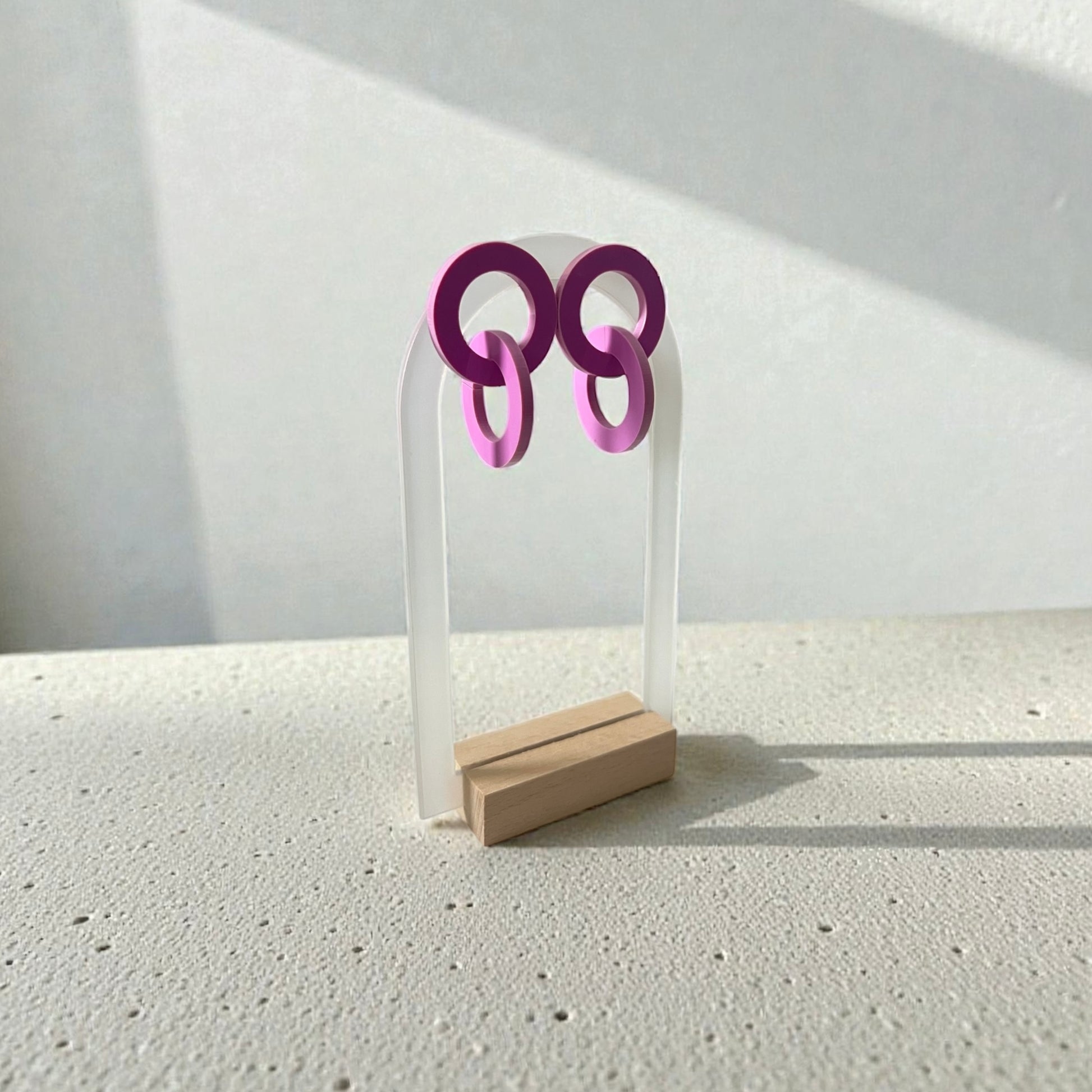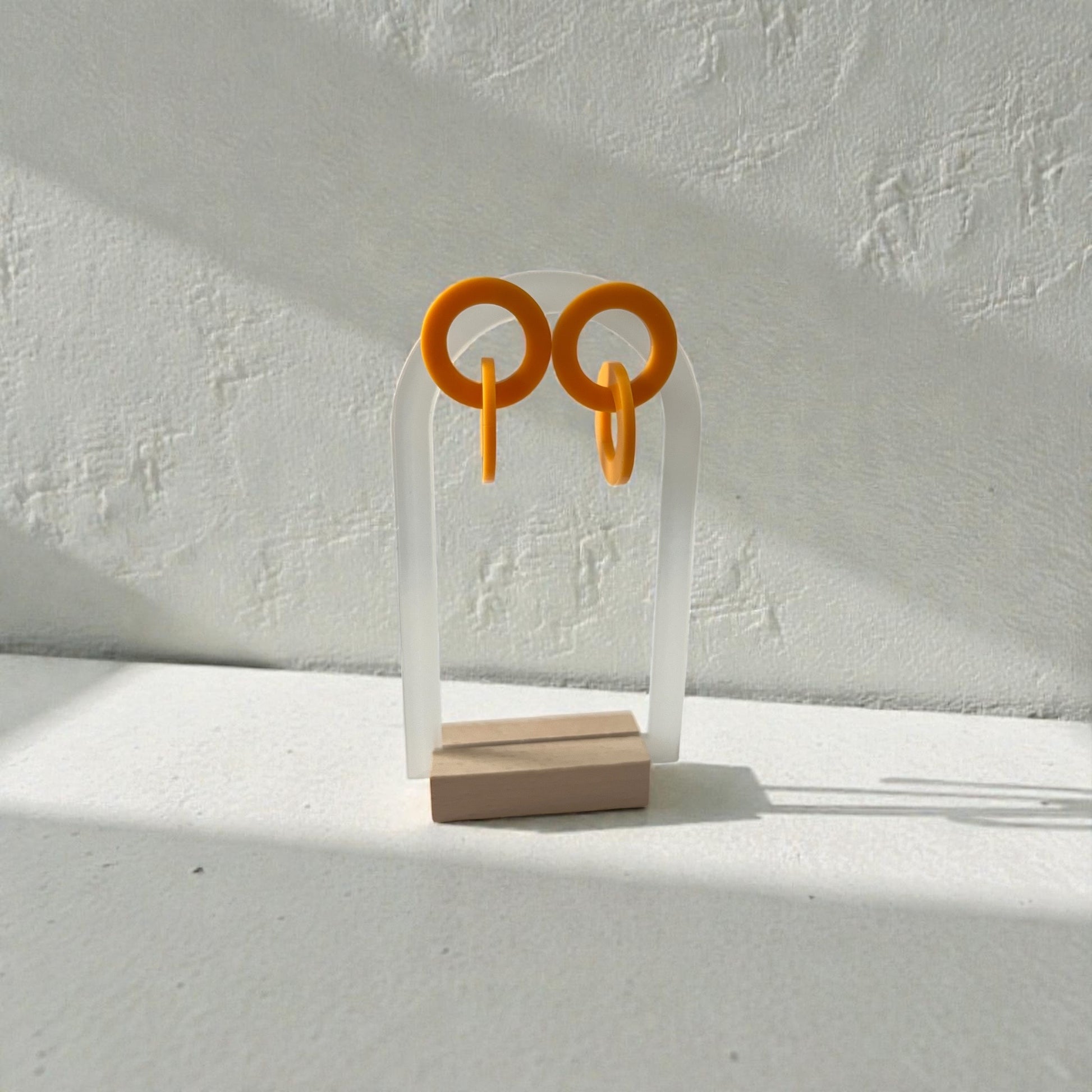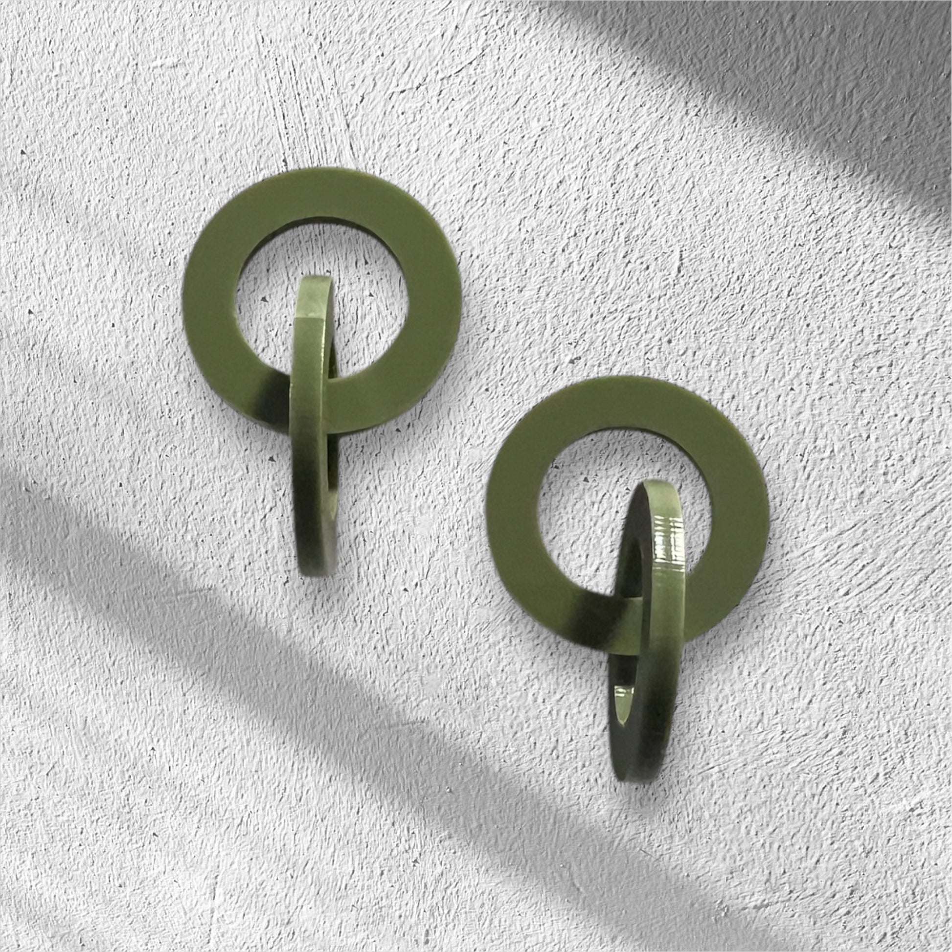 Introducing Loop; the smaller version of Halo with only two loops instead of four;): our captivating loop earrings designed to add a touch of elegance and flair to any outfit. Crafted from high-quality acrylic, these lightweight beauties are perfect for all-day wear. Available in 8 stunning colours!!—red, sand, silver, graphic, indigo blue, olive green, gold and black—the Loop earrings create a chic and sophisticated look that will make you stand out. Their graceful loops exude a timeless charm, making them the perfect accessory for any occasion. Choose your favourite hue and let the Loop earrings illuminate your style!