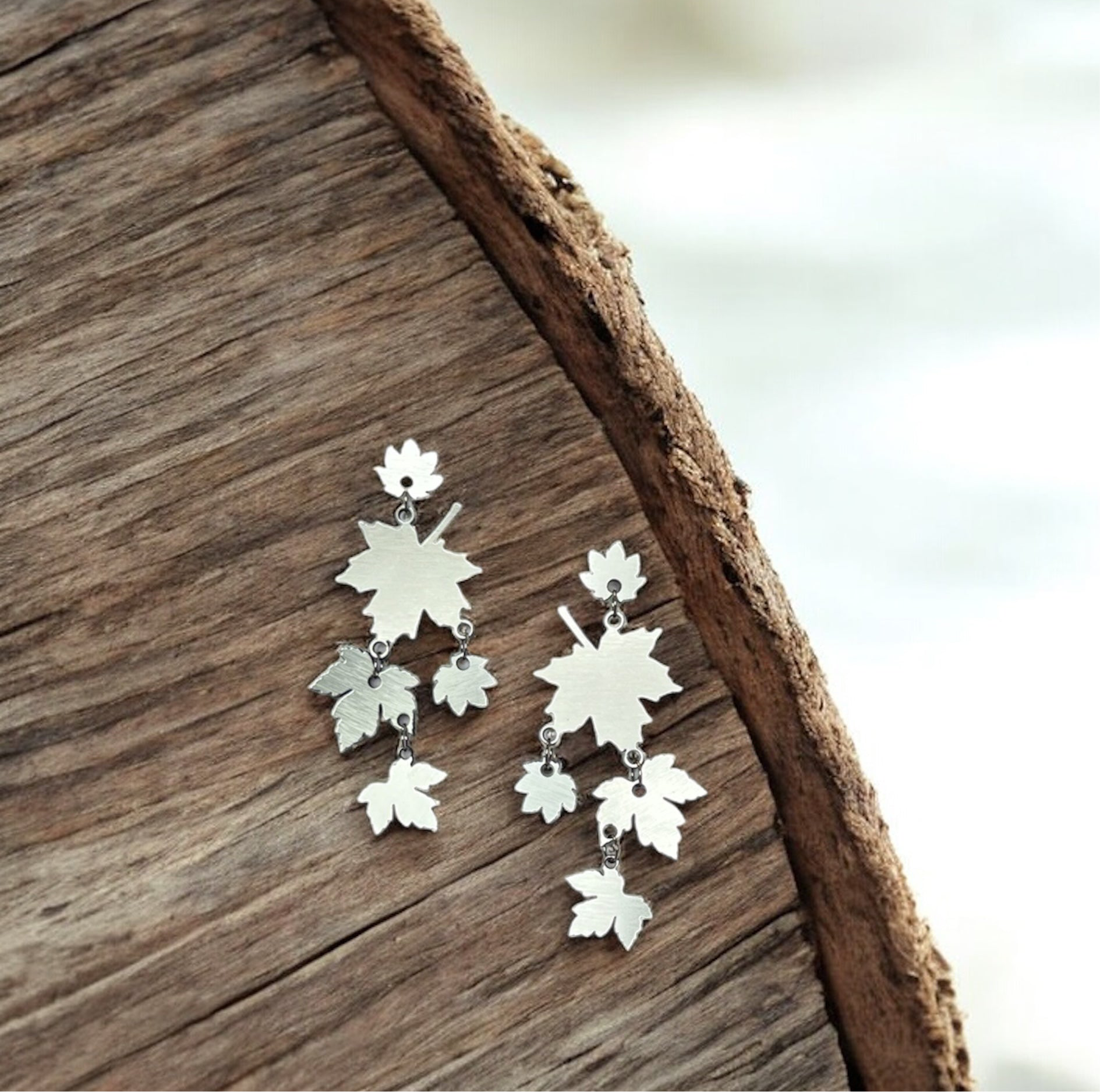Elegant, proud, and full of movement — the Maple Drift Earrings are a modern tribute to Canadian beauty. Featuring a graceful cascade of layered maple leaves, they’re lightweight statement dangles designed to catch the light (and attention) with every turn.