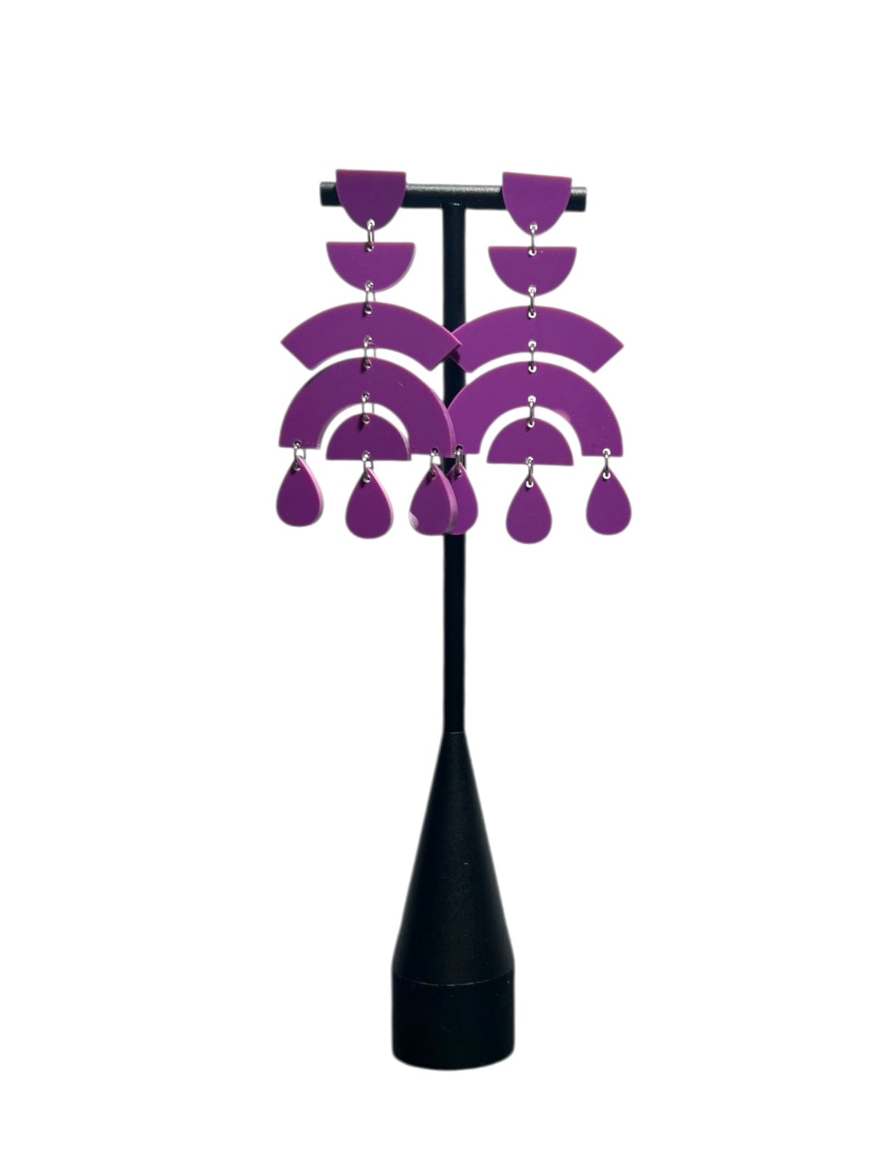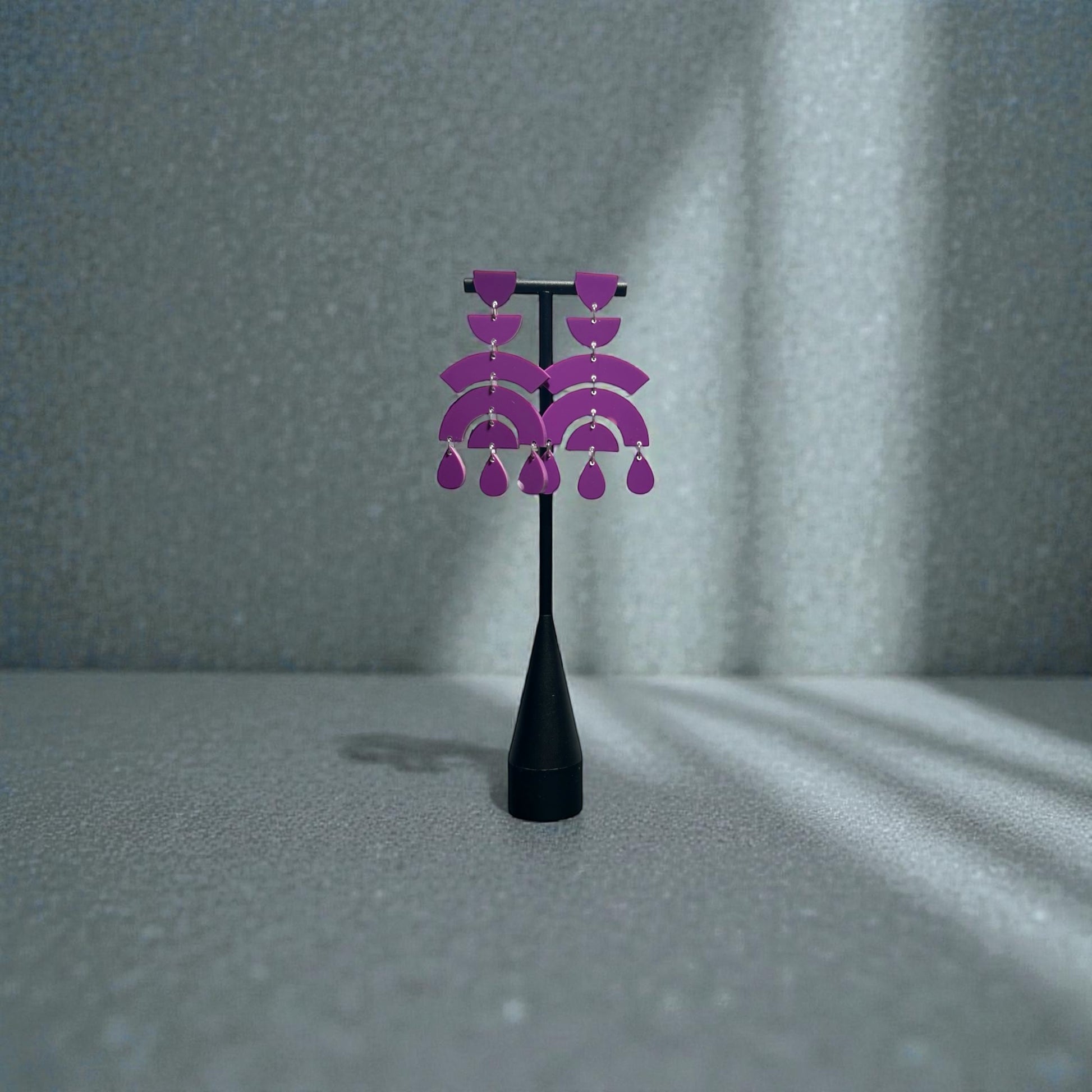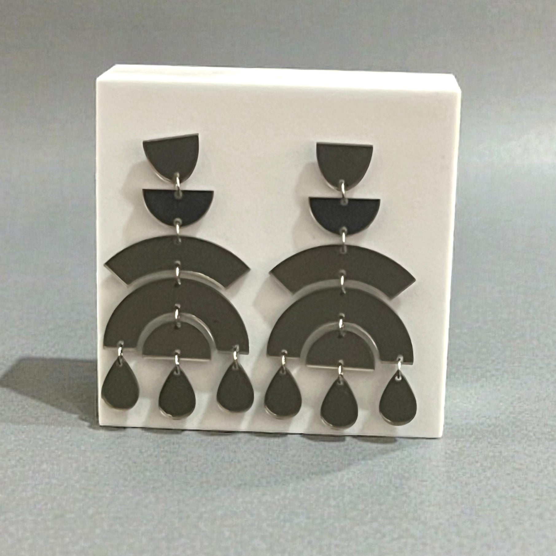Bold, architectural, and full of movement — the Nesrine Earrings are a sculptural statement designed for those who love clean lines with a playful edge. Each pair features stacked geometric arcs that create a cascading silhouette, finished with delicate teardrop drops that sway gently with every step.