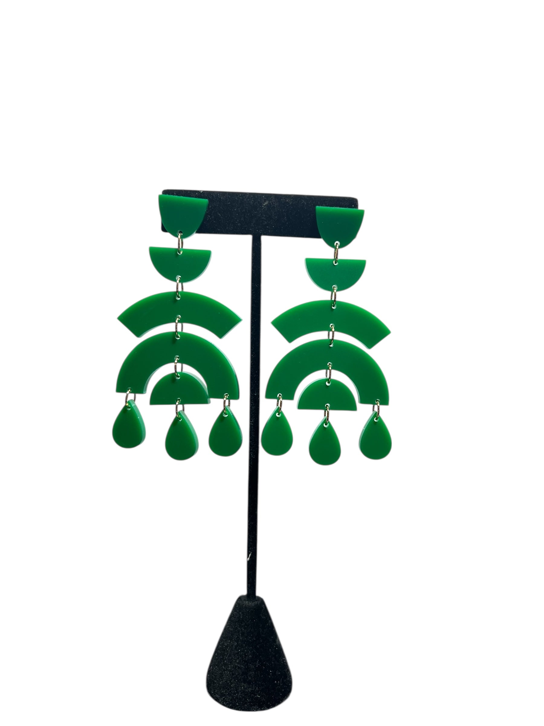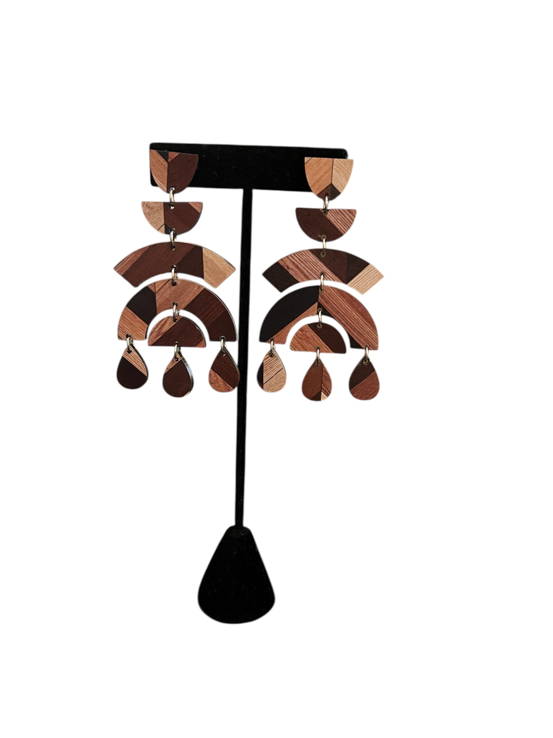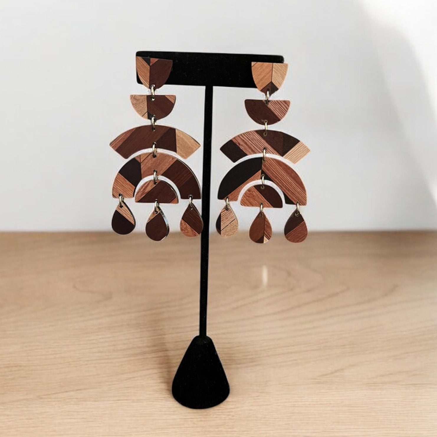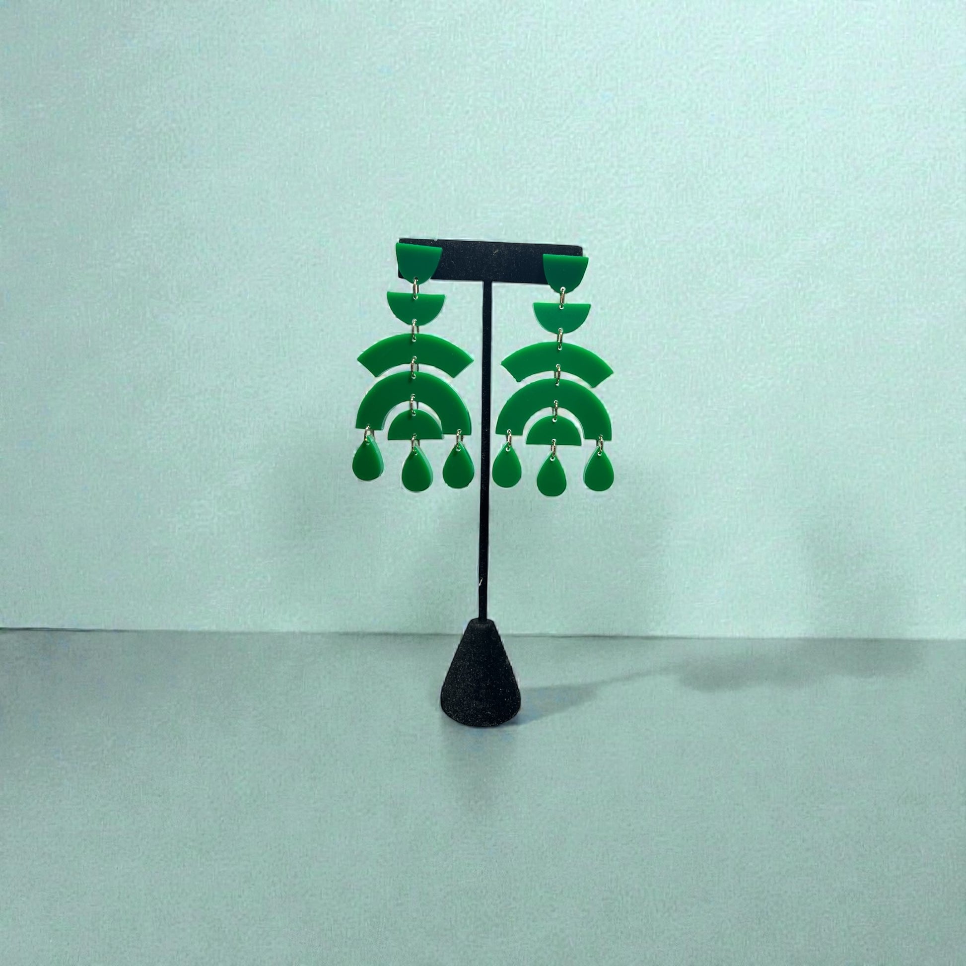 Bold, architectural, and full of movement — the Nesrine Earrings are a sculptural statement designed for those who love clean lines with a playful edge. Each pair features stacked geometric arcs that create a cascading silhouette, finished with delicate teardrop drops that sway gently with every step.