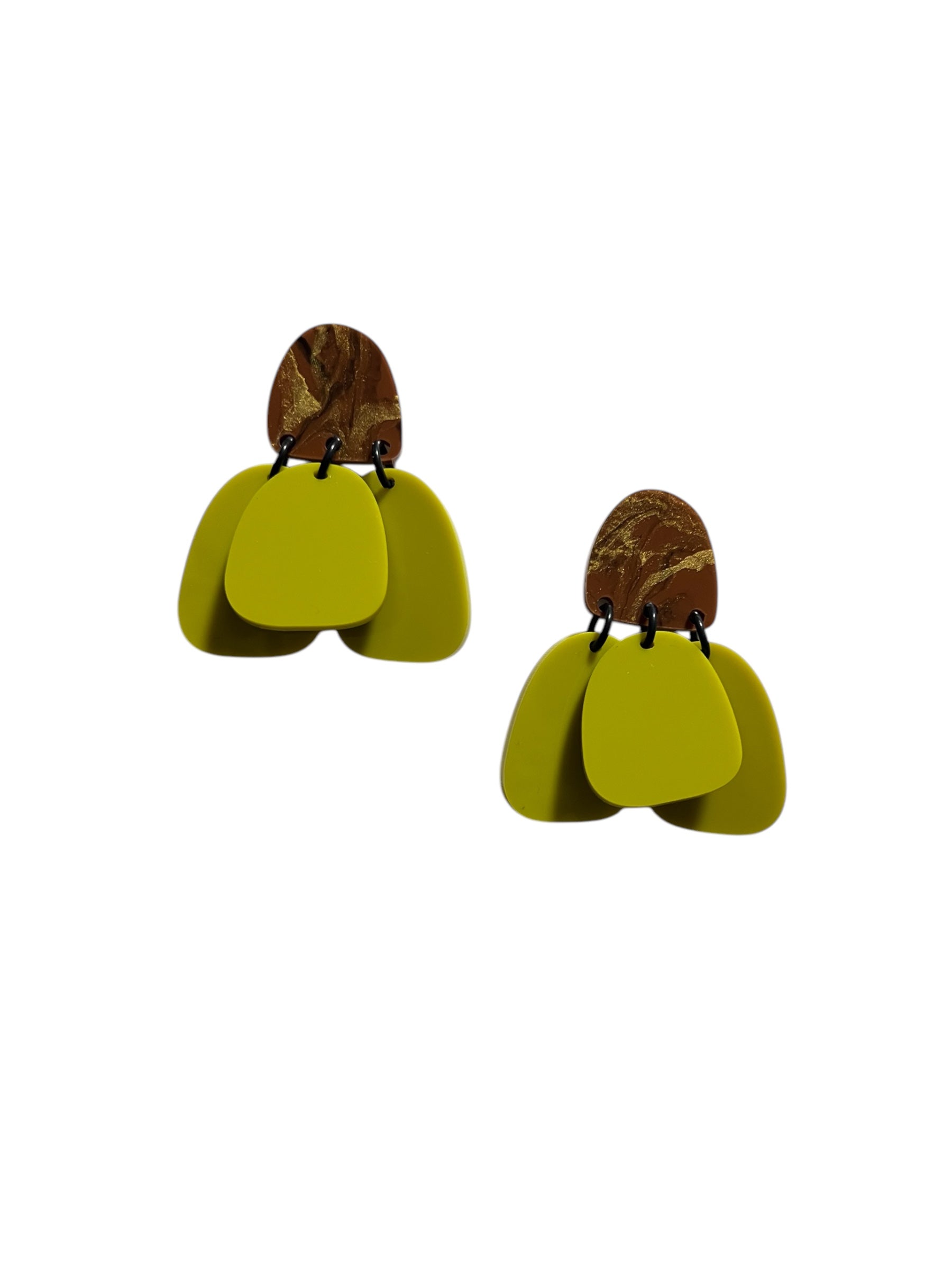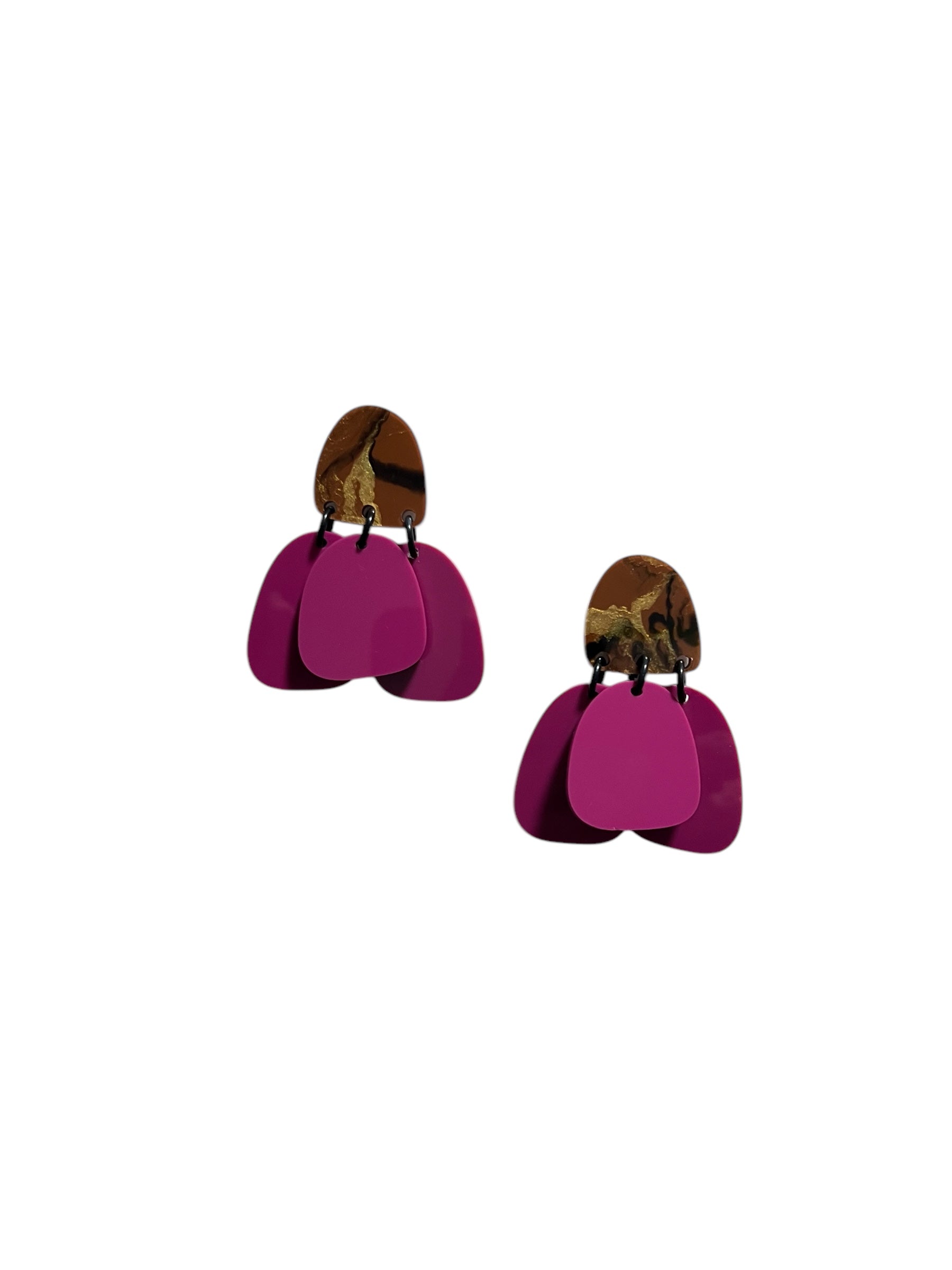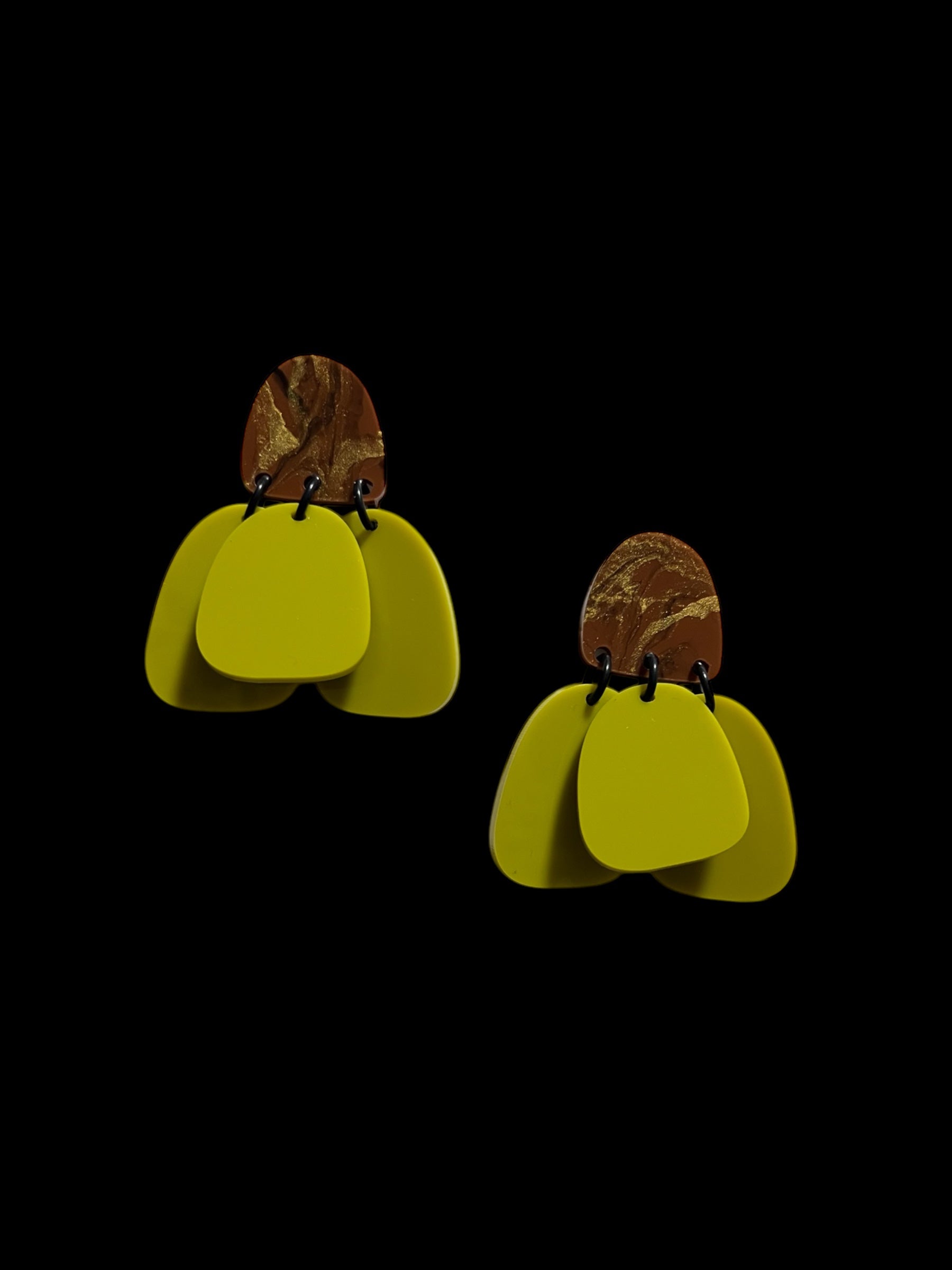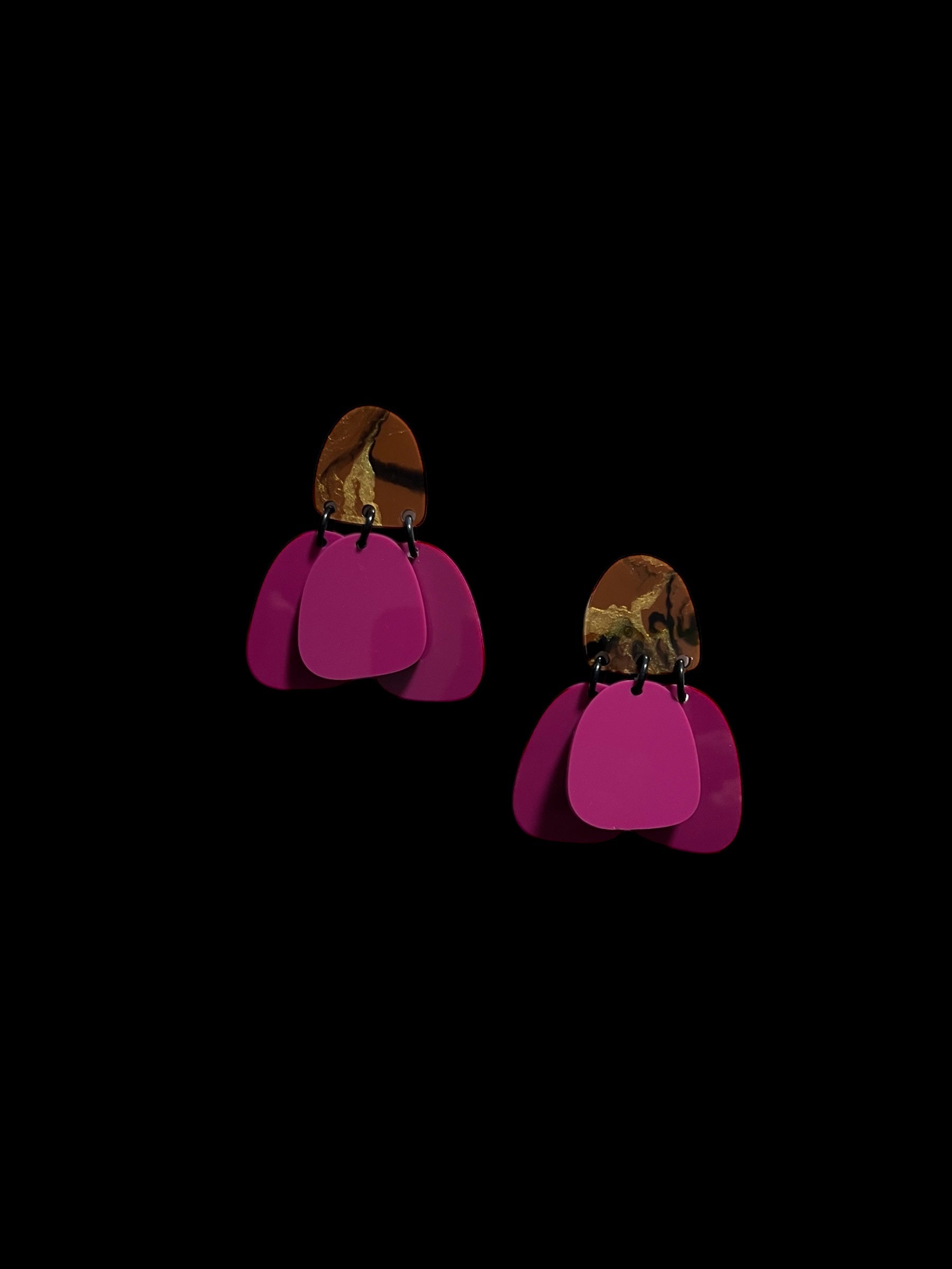 The Pétales Earrings are a vibrant statement accessory, designed to add bold pops of color and a unique flair to any outfit. Featuring tortoise marble acrylic tops, three large single petals dangle gracefully below in striking 2025 colours: chartreuse, French blue, and Cerise. Lightweight and eye-catching, their bold yet elegant design is perfect for anyone who loves making a playful style statement.