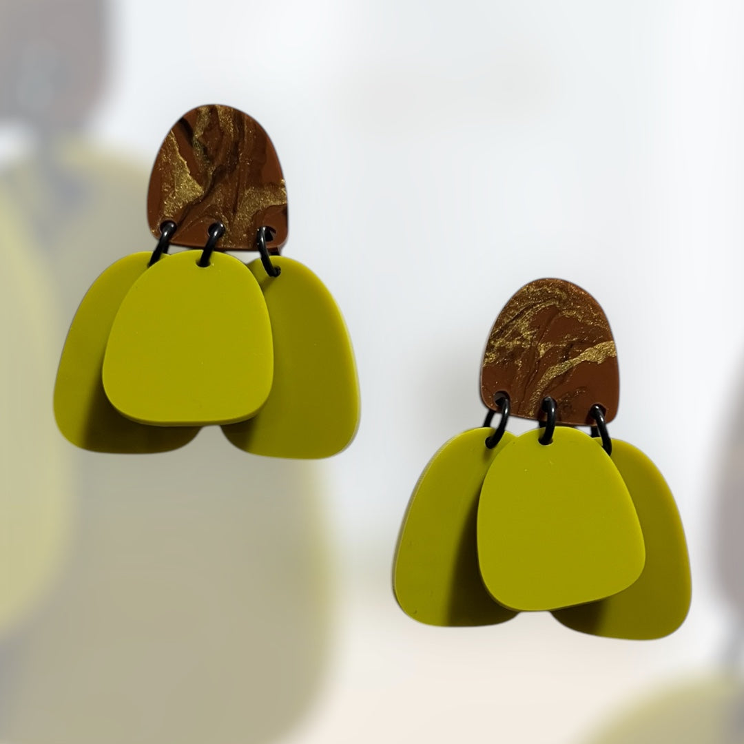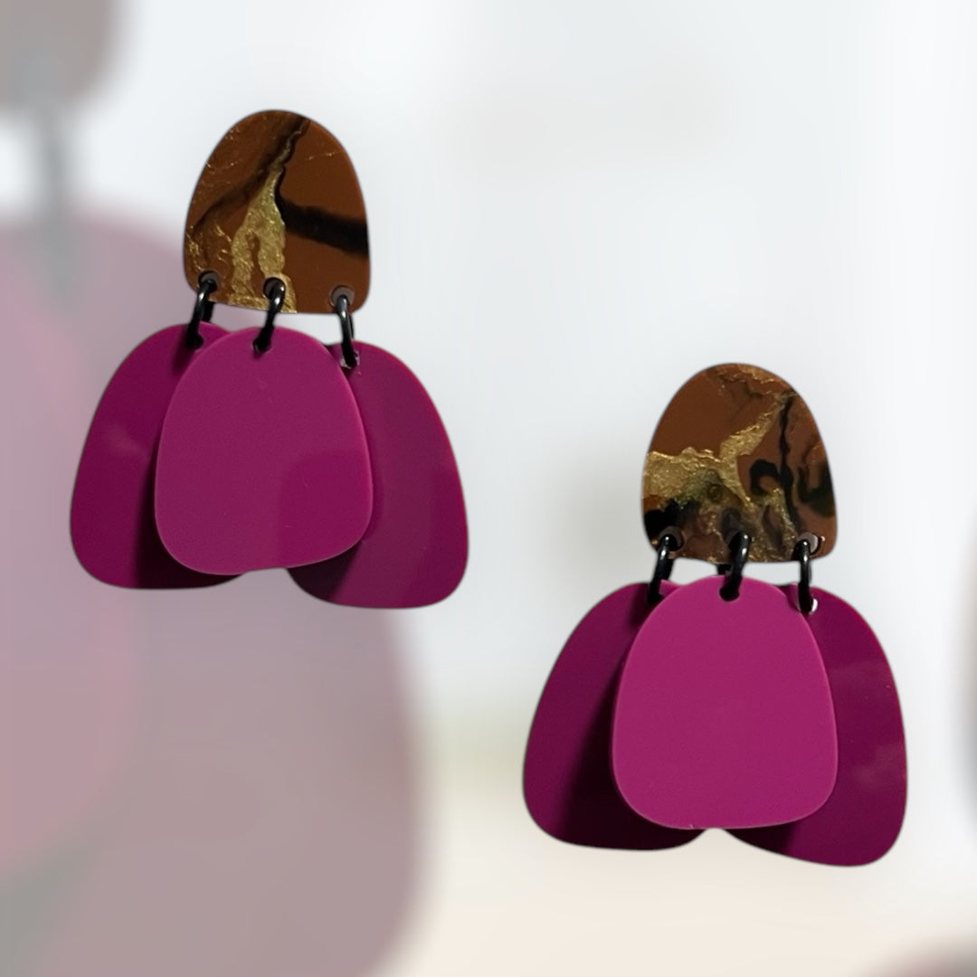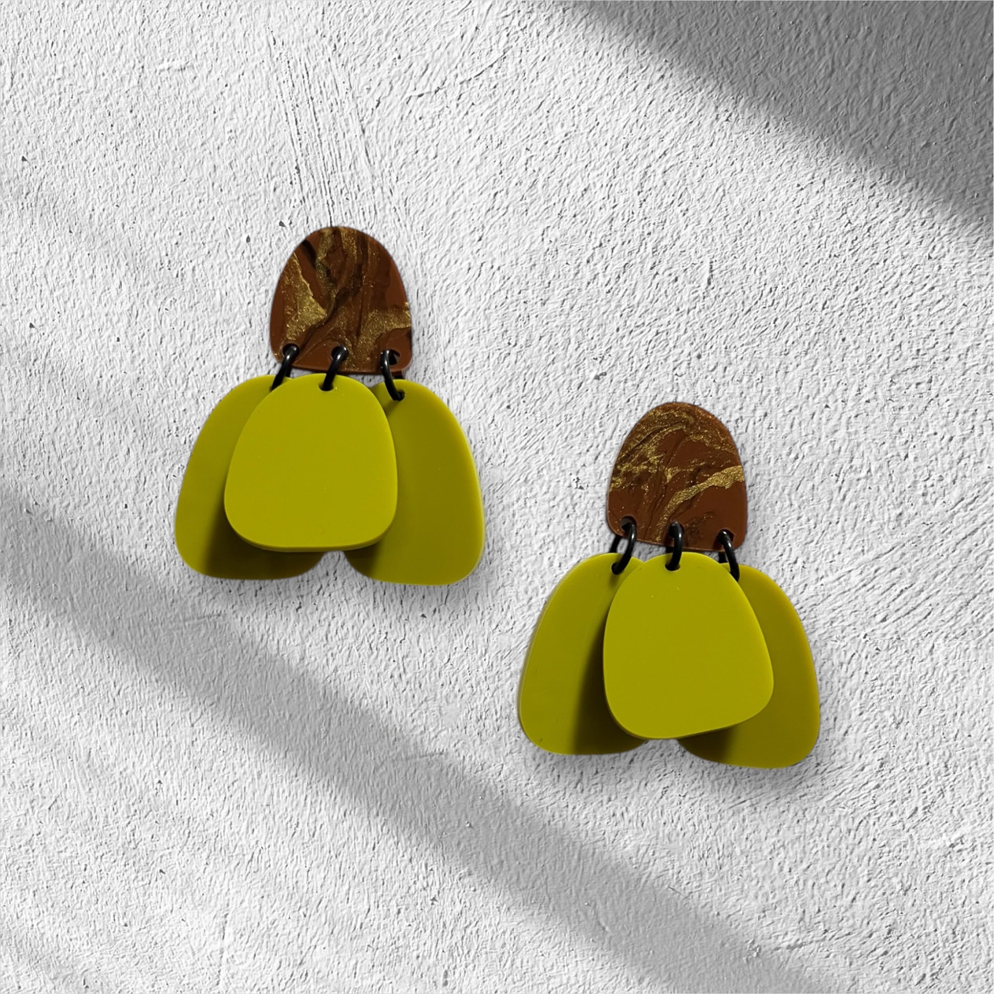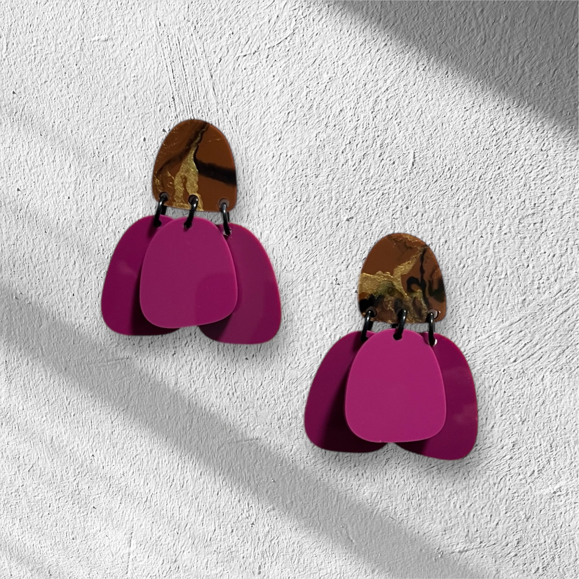 The Pétales Earrings are a vibrant statement accessory, designed to add bold pops of color and a unique flair to any outfit. Featuring tortoise marble acrylic tops, three large single petals dangle gracefully below in striking 2025 colours: chartreuse, French blue, and Cerise. Lightweight and eye-catching, their bold yet elegant design is perfect for anyone who loves making a playful style statement.
