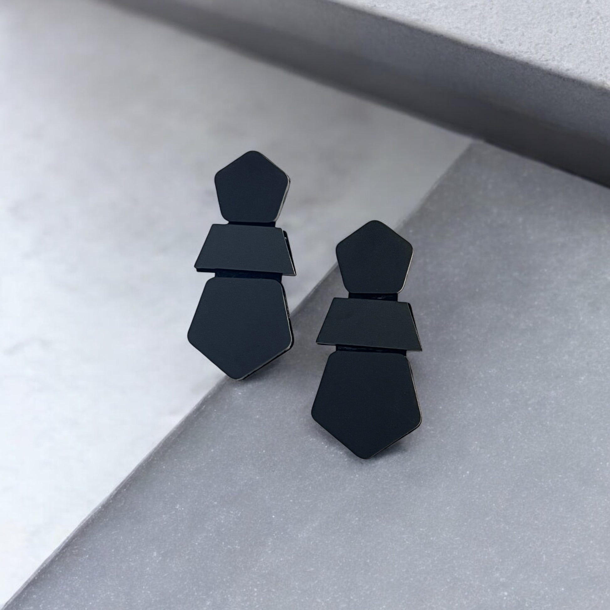 The Stacked Earrings are a stunning blend of elegance and versatility. Backed on leather, their geometric design is both lightweight and eye-catching, making them the perfect choice for casual outings or elevating your business attire. A timeless addition to any wardrobe.