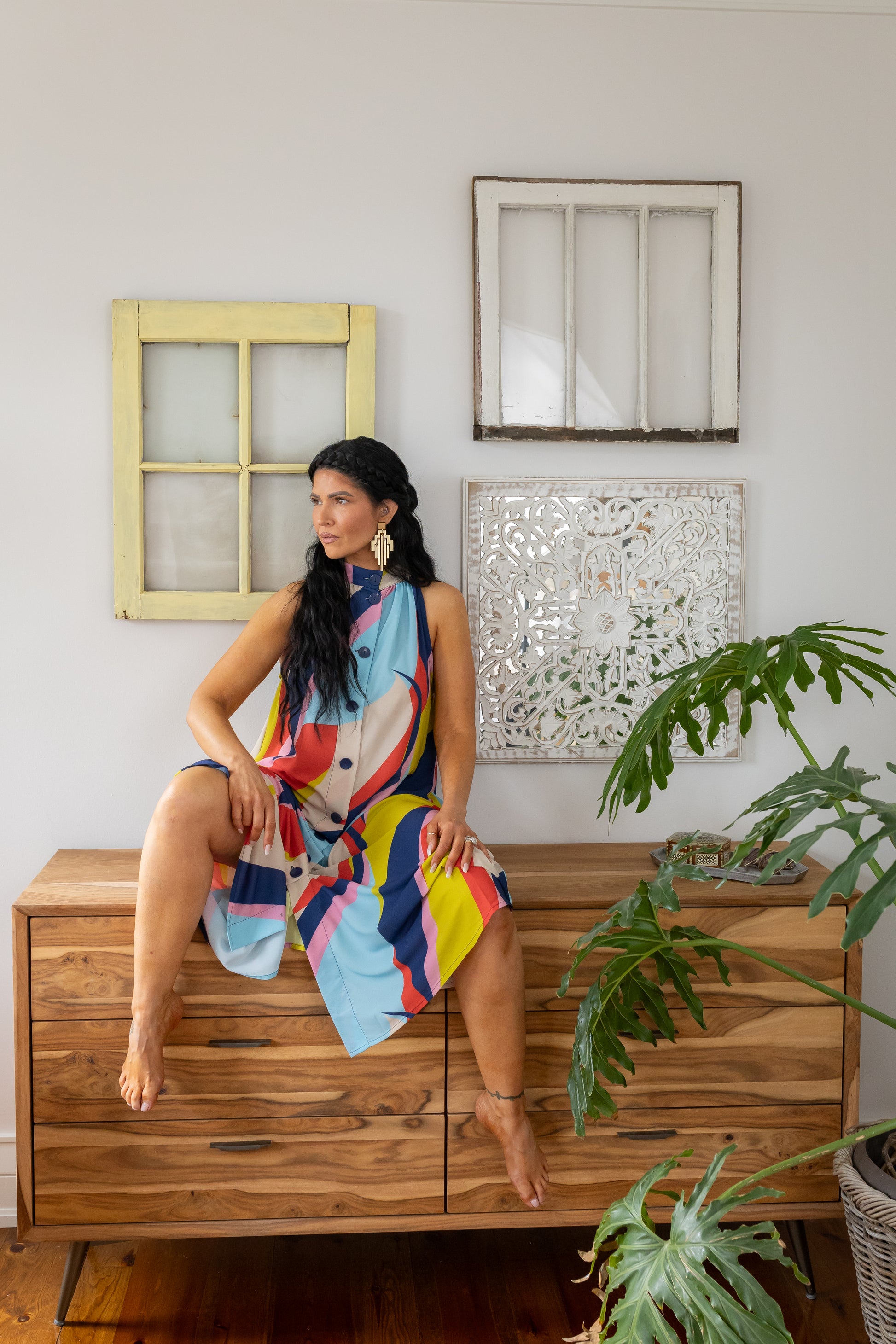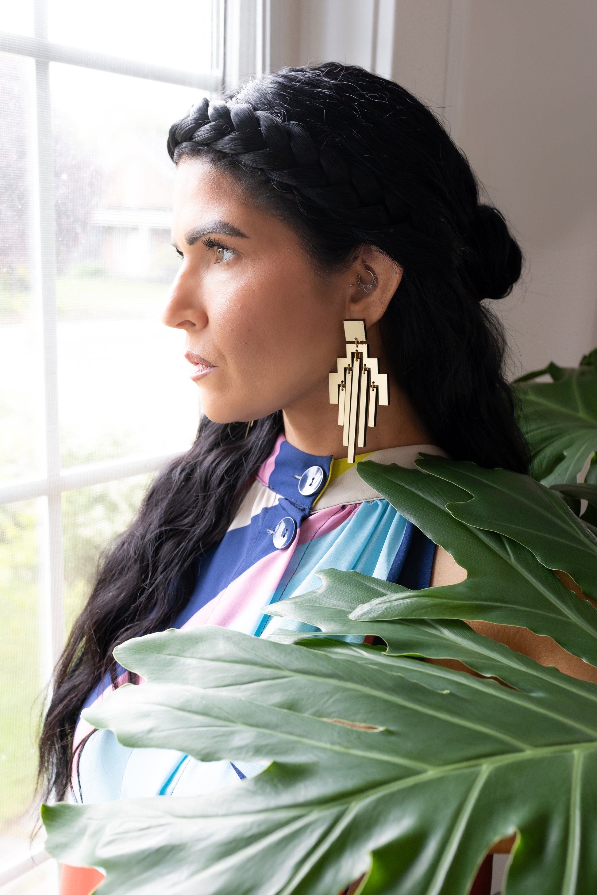 With their cascading, architectural silhouette, Threa channels the vertical power of pillars, arches, and woven histories — layered and elevated. Bold in form yet feather-light in feel, these chandelier earrings are for those who lead with presence and don’t shy away from making a statement.