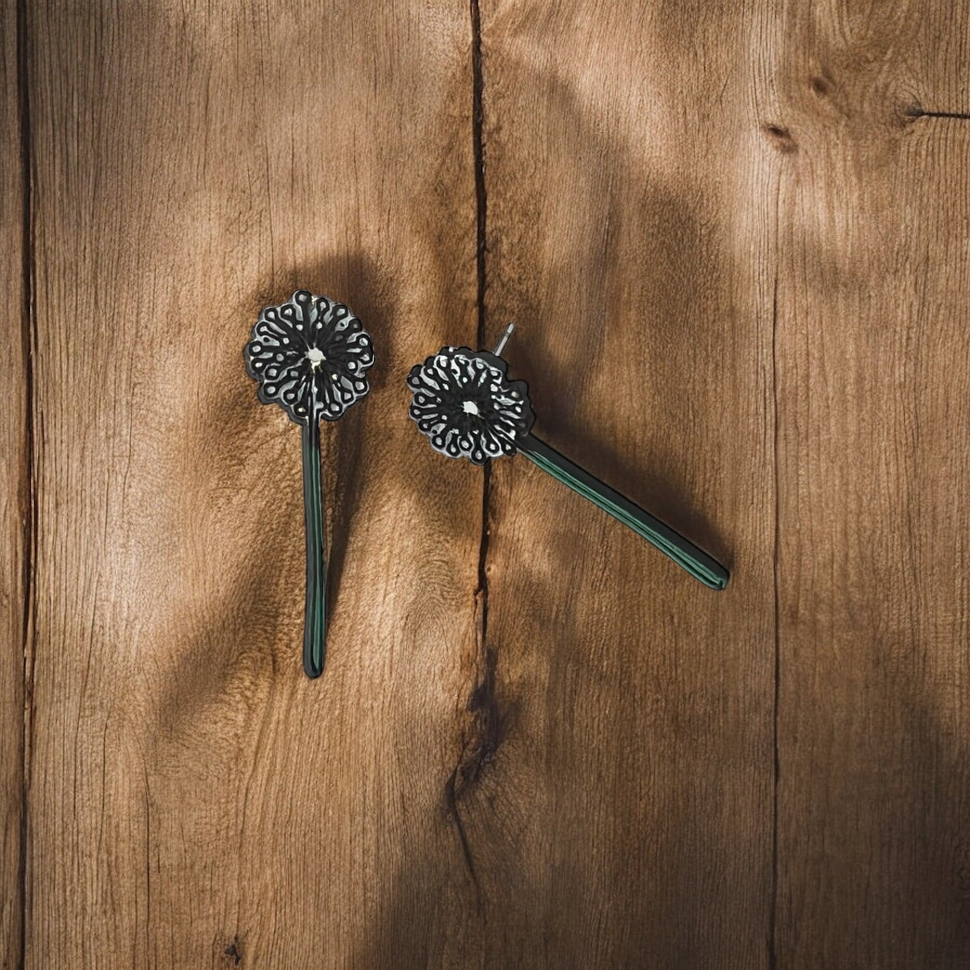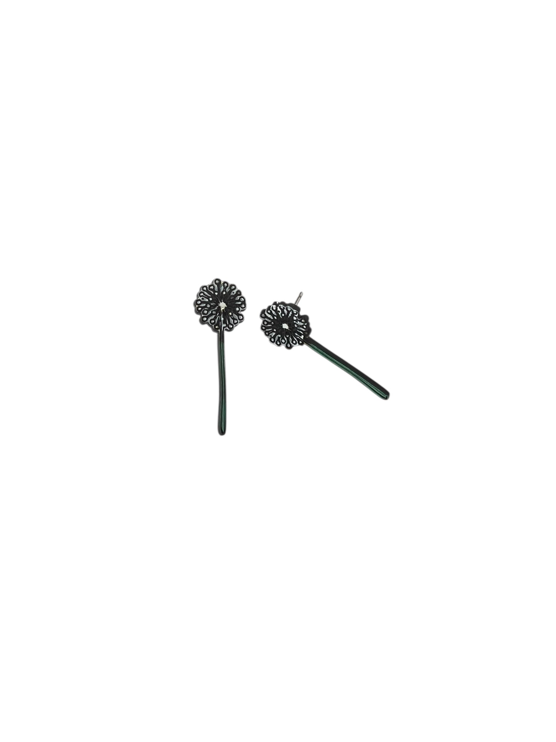 Delicate, playful, and quietly charming — the Whimsy Bloom studs are a fresh twist on florals. With their airy lace-like bloom and graceful green stem, these earrings celebrate the beauty of growth, nature, and all things wonderfully simple.